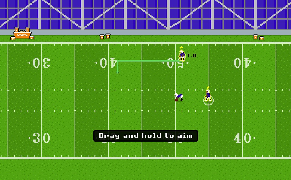 Use the mouse to aim your passes. Click and drag to adjust the throw’s strength and direction. To send the ball flying to your receiver, release at the ideal time.